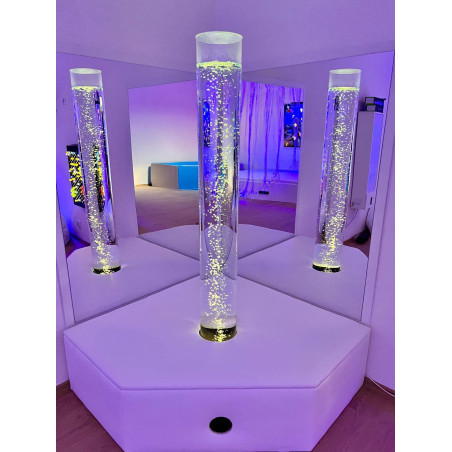 Kolumna wodna o średnicy 15cm i wysokości 180cm w podeście tapicerowanym narożnym.